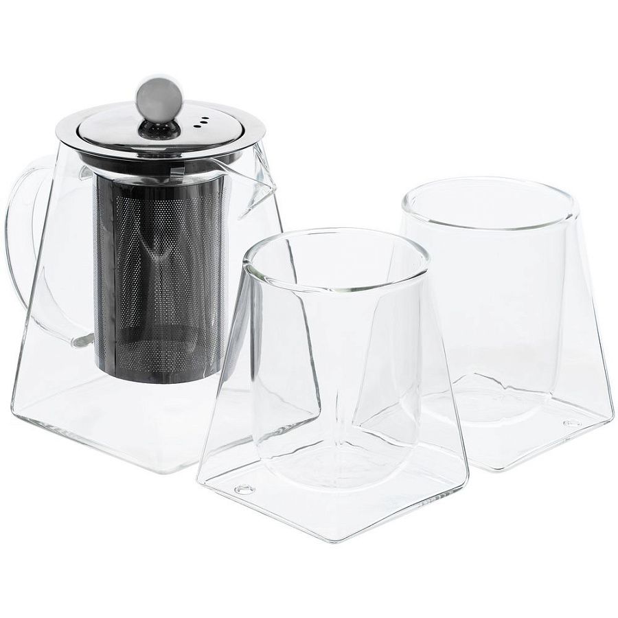 чайник, стаканы - боросиликатное стекло; крышка и сито - нержавеющая сталь; коробка - переплетный картон