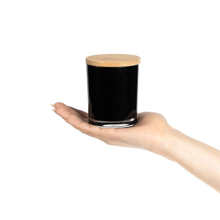 свеча - воск, кокосовый, парафин; подсвечник - стекло; крышка - дерево; фитиль - дерево