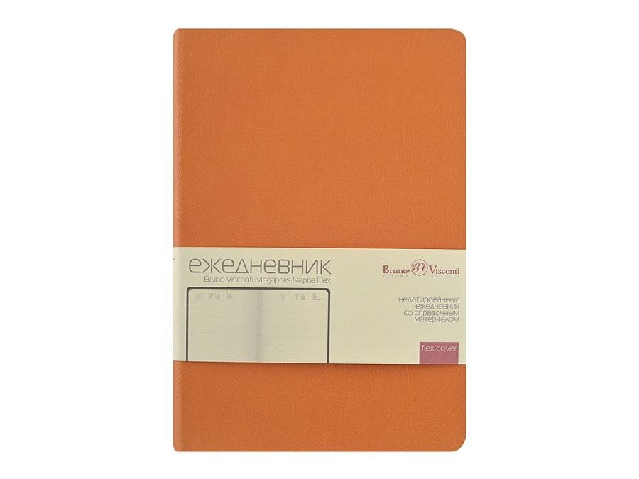 Обложка недатированного ежедневника "Megapolis Nappa Flex" ТМ Bruno Visconti произведена из искусственной кожи без применения переплетного картона, благодаря чему он легче и изящнее классических. Его можно свернуть в трубочку, обложка и блок не пострадают. При этом, для ежедневника формата А5 доступны те же опции, что и для любых других ежедневников — окрашенный обрез, крупнозернистая фактура искусственной кожи обложки, двойное ляссе 7 мм.