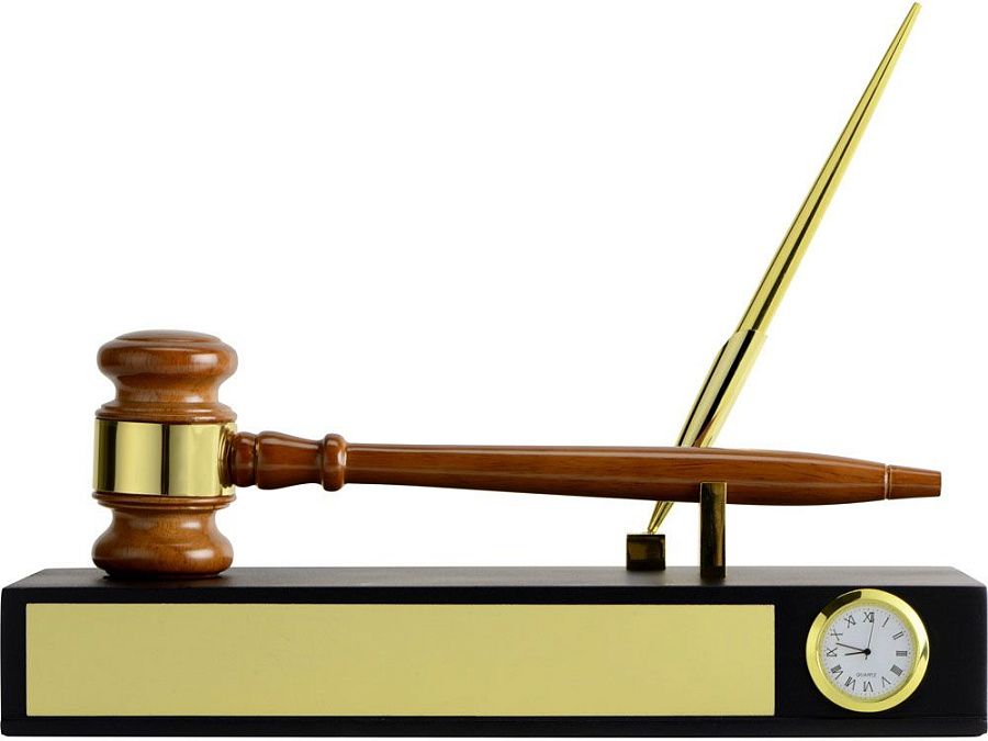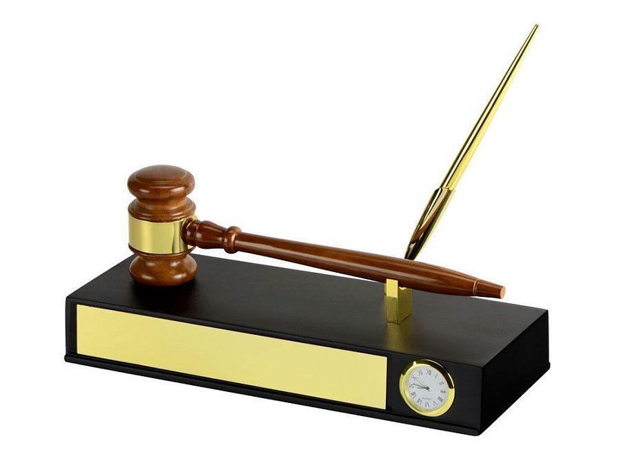 подставка с часами 29,3 х 11,7 х 8 см, молоток d4,5 х 7,5 х 26,2 см, ручка шариковая d1 х 17,6 см, шильд 22,2 х 3,5 см