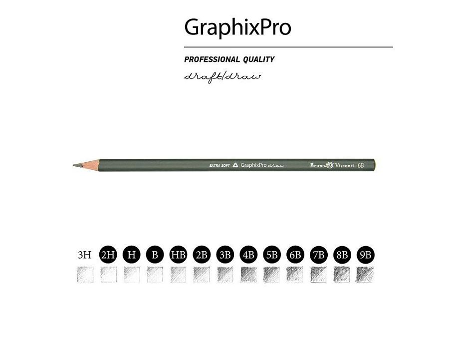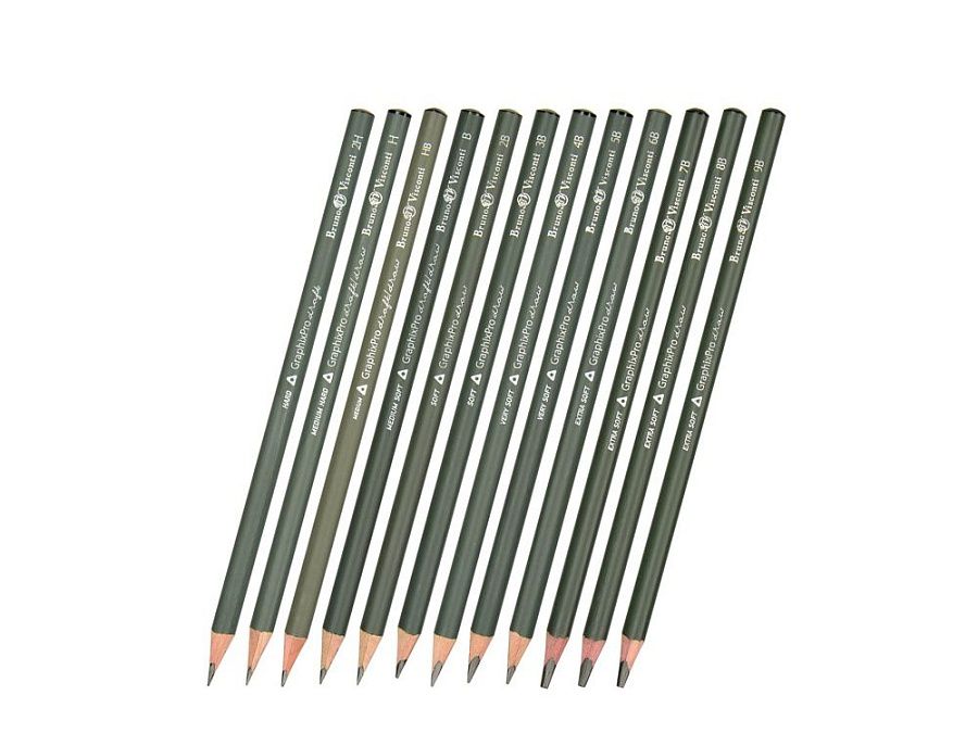 Двенадцать чернографитных карандаша «Sketch&Art» от BrunoVisconti - универсальный набор карандашей различной степени твердости (2H-9B) для выполнения различных графических работ.