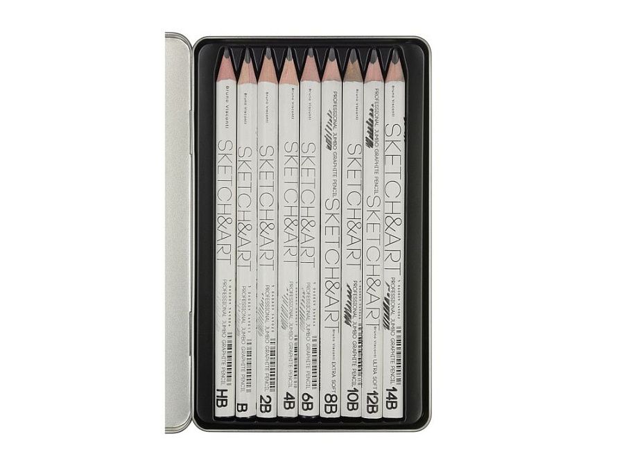 Универсальный набор чернографитовых карандашей с диапазоном твердости от HB до 14В. Корпус карандашей произведен из термообработанной липы, вязкость и плотность которой позволяет надёжно удерживать грифель и сохранять качество заточки на высоком уровне.