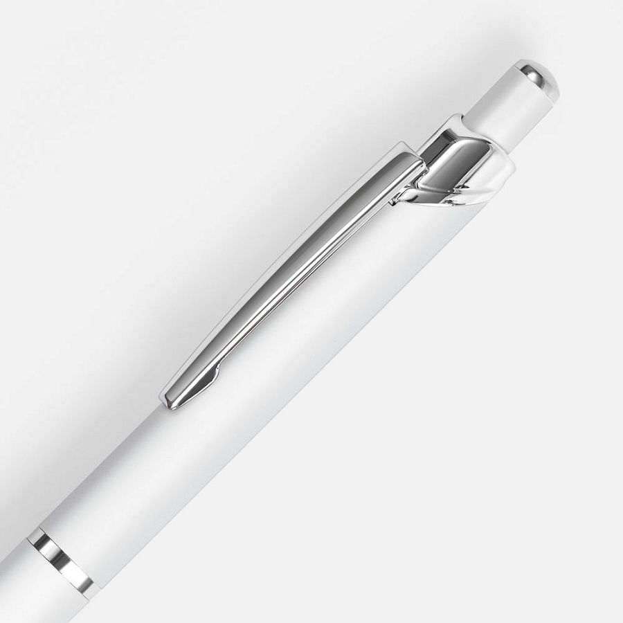 Металлическая ручка с покрытием софт-тач и серебристыми деталями.