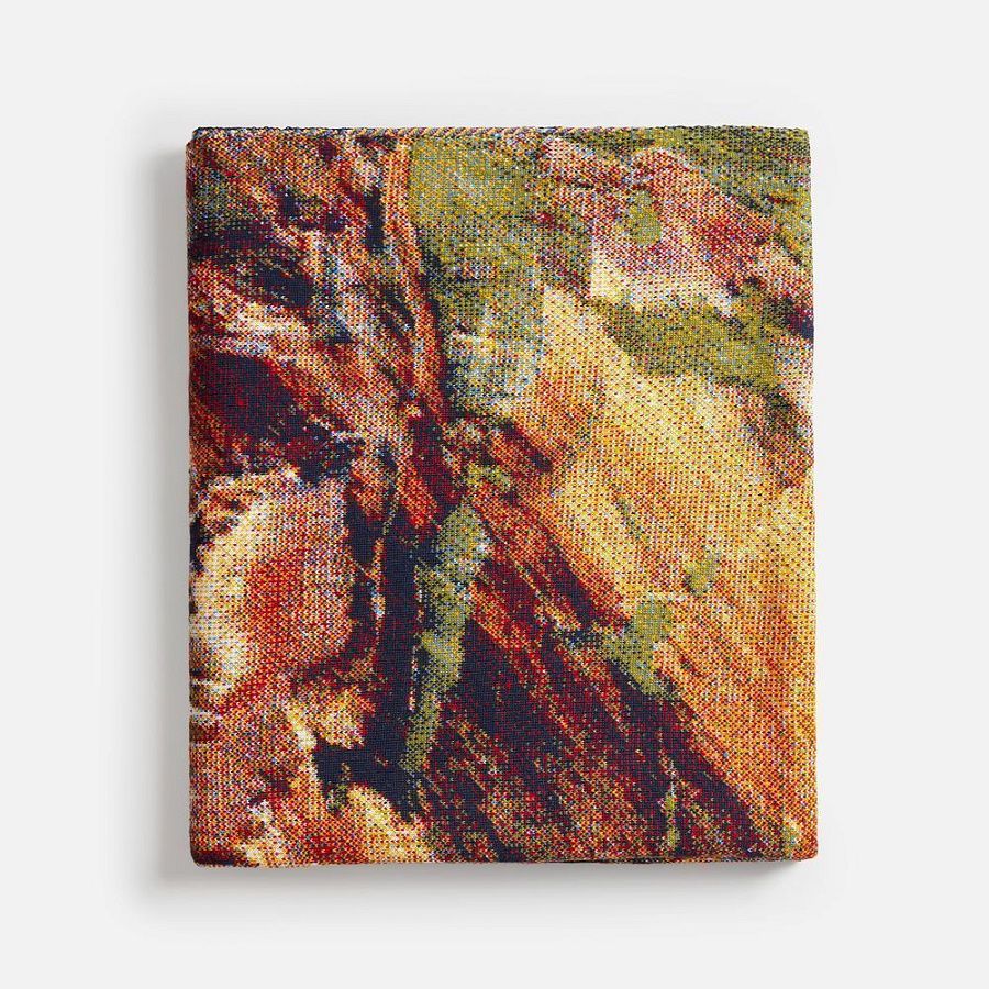 Плед с вывязанным логотипом и индивидуальным рисунком в фирменной цветовой гамме. Выполняется на машине 12 класса с увеличенным количеством нитеводителей и уменьшенным размером иглы, что позволяет делать более мелкую петлю и использовать в вязании до 8 цветов пряжи в одном ряду для создания плавных градиентов. Теперь любой плед можно превратить в настоящую картину и изобразить на ней все, что захочется, с почти фотографической точностью.