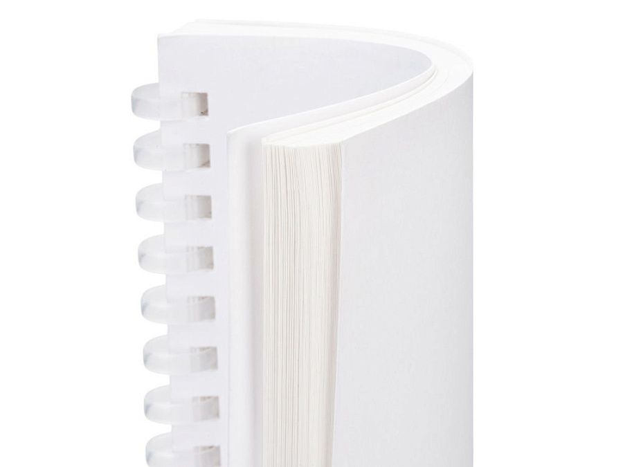 Мягкая прозрачная спираль облегчает блокнот, а гибкая обложка позволит сэкономить место в сумке, свернув блокнот.