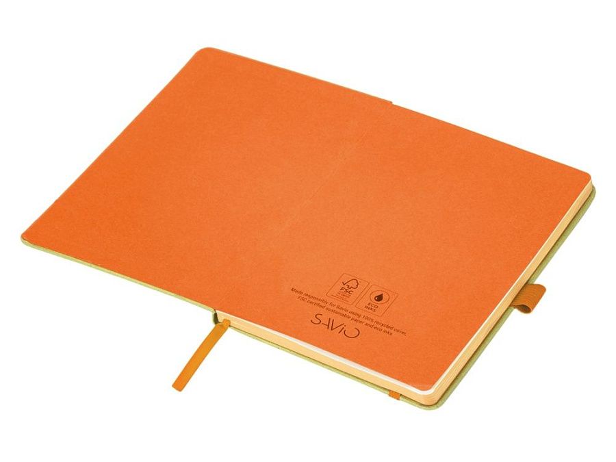 Бумажный блок на 80 листов выполнен из бумаги, полученной из древесины из специальных восполняемых лесных ресурсов, имеет сертификат FSC, международной некоммерческой организации лесного попечительского совета. Линовка - выполнена специальными экочернилами, при изготовлении которых используется меньшее количество энергии.