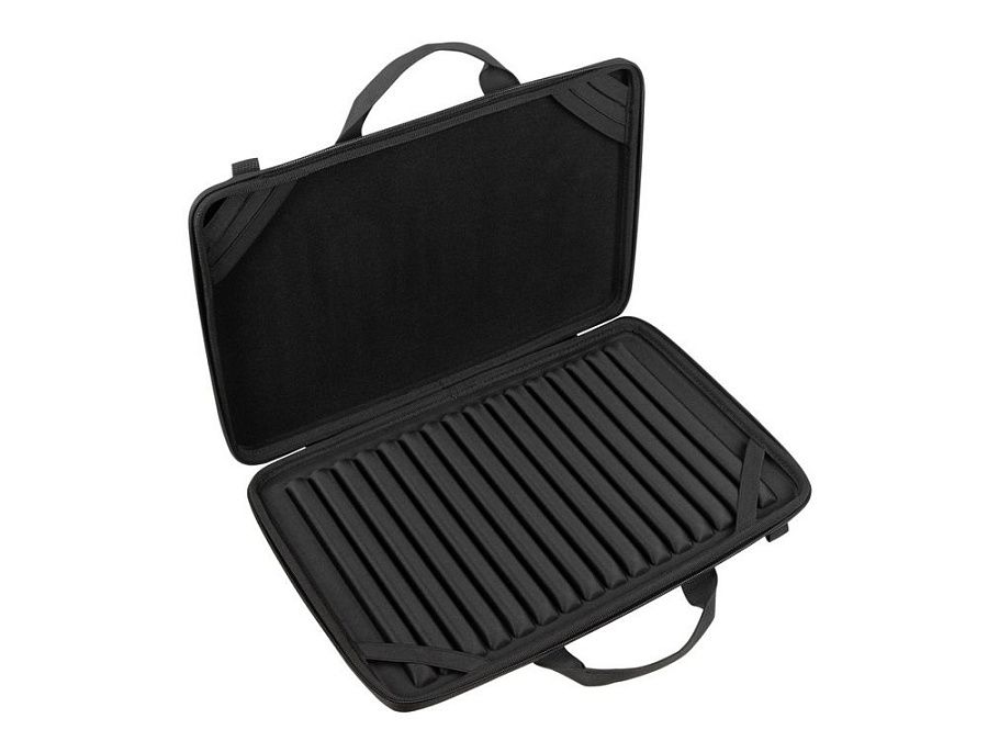 • Внутри дно оборудовано специальными накладками для защиты ноутбука, его рифленая форма обеспечивает хорошую вентиляцию и снижает нагрев устройства при работе в чехле.