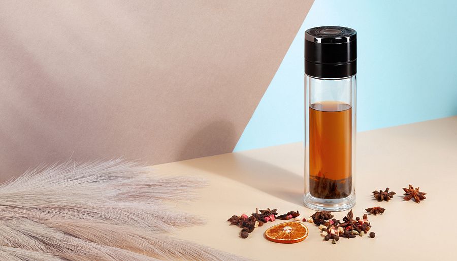 Заварочный термос "Press" 400 мл с удобной крышкой, которая открывается нажатием кнопки, для закрытия достаточно слегка надавить на нее до щелчка. Сито из 304 стали для фильтрации содержимого. Двустенная колба из боросиликатного стекла идеально подходит для горячих напитков, внешняя стенка не нагревается, комфортно держать в руках. Стекло не имеет посторонних запахов, напитки сохраняют вкус.