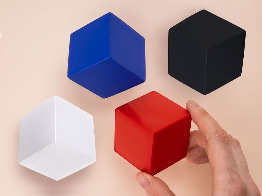 Приятный на ощупь кубик-антистресс. Удачное решение, когда на одном предмете нужно разместить несколько логотипов, например, спонсоров мероприятия.