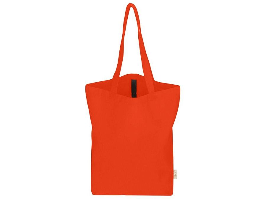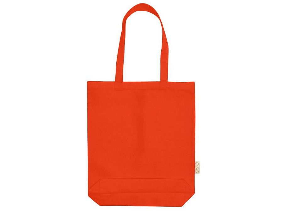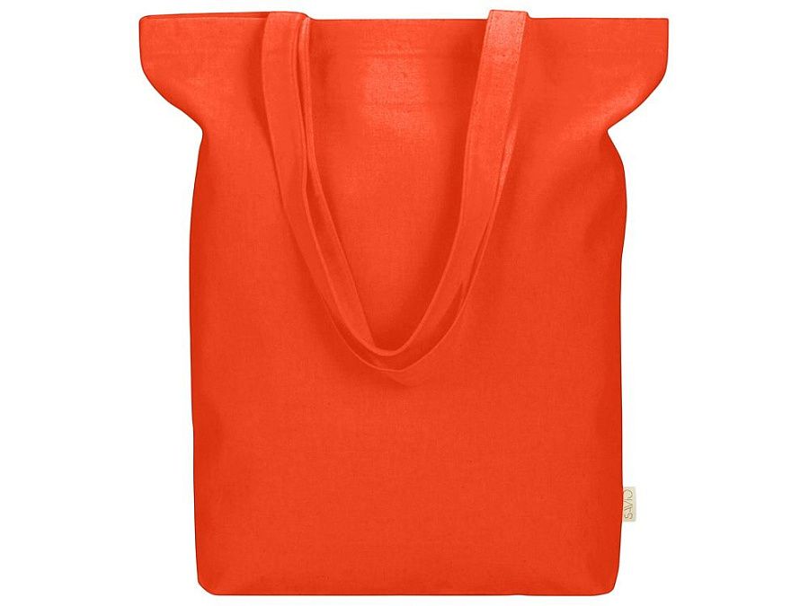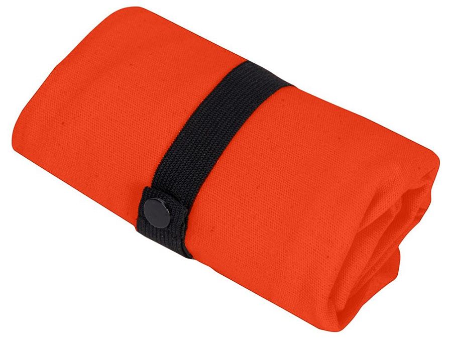 Удобная сумка-шоппер из переработанного хлопка. Можно хранить в сложенном виде и фиксировать с помощью эластичной ленты, застегивающейся на кнопку.
