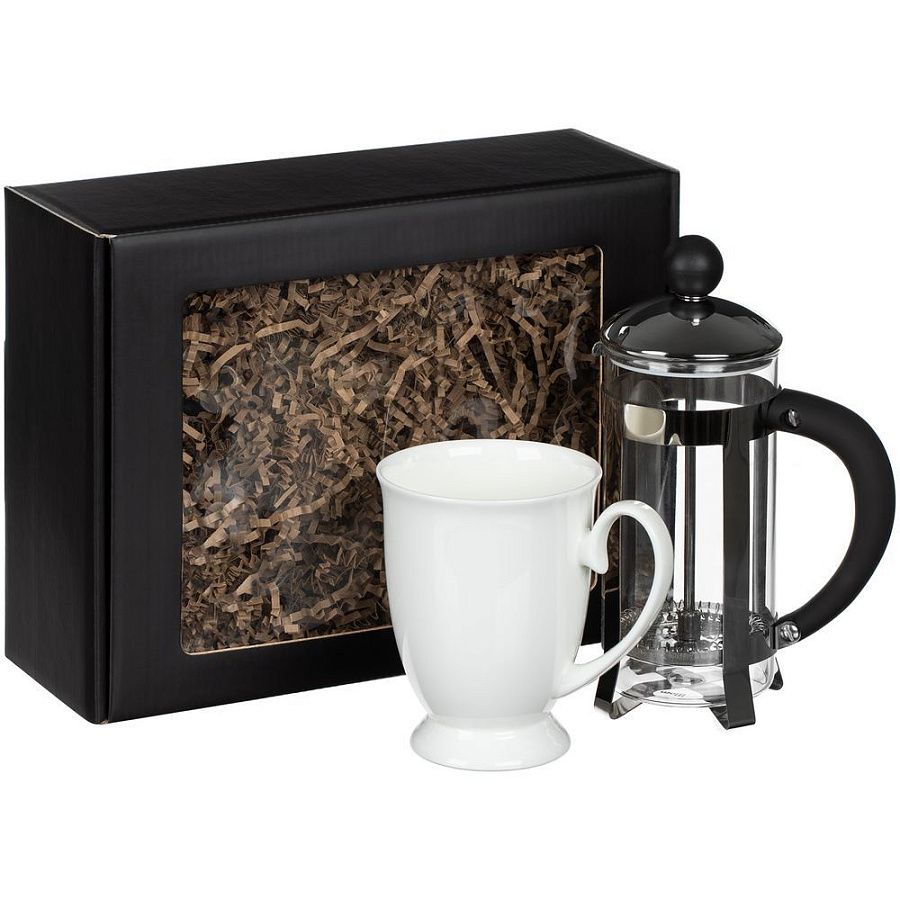 френч-пресс: высота 19 см, диаметр 7 см, ширина с ручкой 11,5 см; кружка: диаметр сверху 8,5 см; высота 10,8 см; дно 6 см; коробка: 25,9х19,7х9 см
