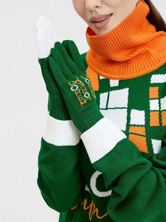 Перчатки в фирменной цветовой гамме.