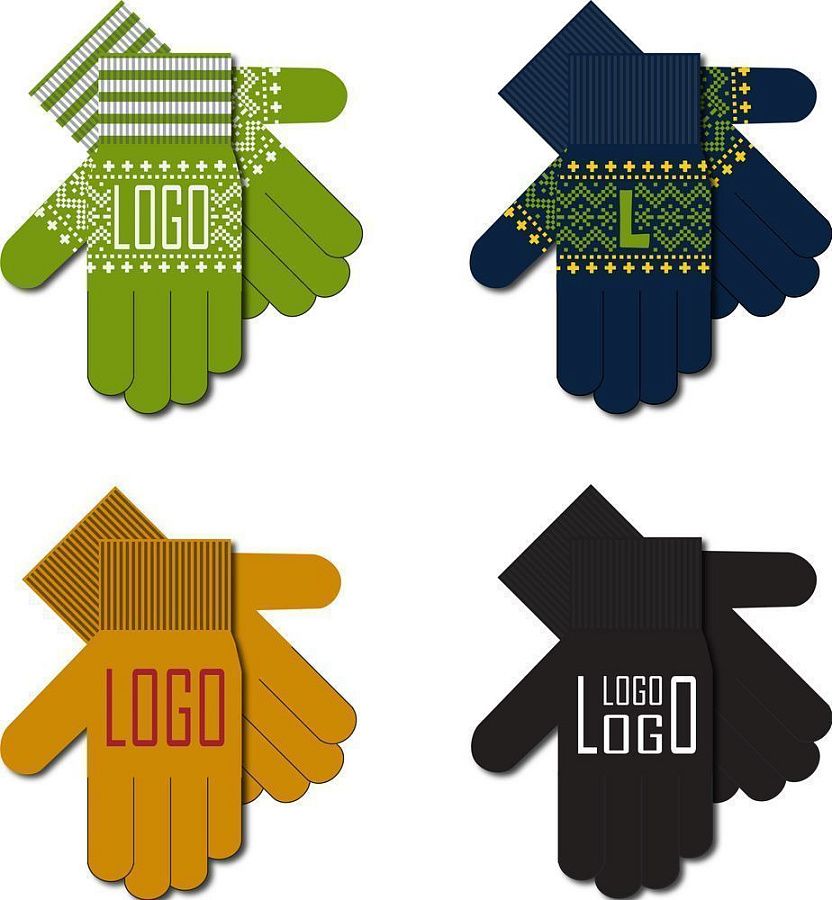 - Интарсия — логотип будет располагаться на одной стороне перчатки (либо на тыльной, либо на стороне ладони). Оптимально два цвета: один цвет — основной, второй цвет — логотип.