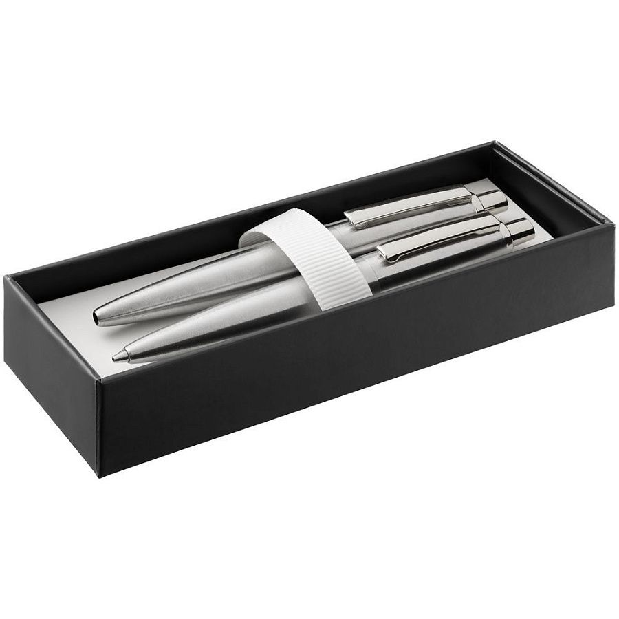 Механический карандаш и ручка Poetica — это благородная классика и элегантность в металлическом корпусе. Эргономичная форма и выигрышный серебристый оттенок корпуса делают элементы набора неотъемлемой частью делового образа и персонального стиля.