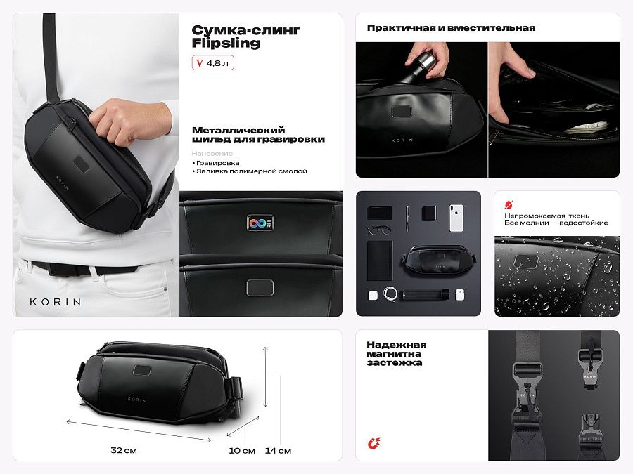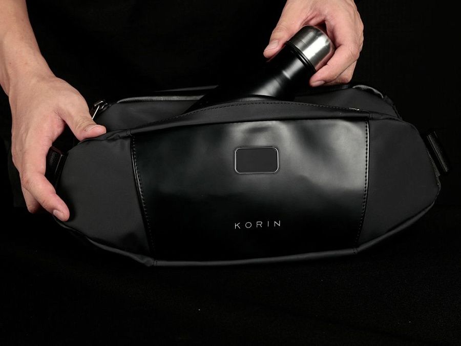 Сумка-слинг- модный и стильный аксессуар. Выполнена из водостойкого материала с водонепроницаемыми молниями. Отделка из экокожи. Расширяющийся водостойкий карман для хранения бутылки или зонта. Потайной карман сзади на магните. Лямка из нескользящего материала 130 см на магнитной застежке. Поставляется в коробке с ручкой.