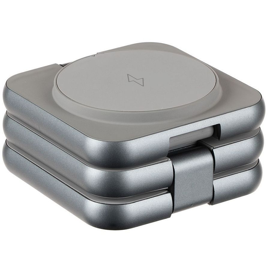 Terza — компактное устройство для беспроводной зарядки сразу трех устройств. Станция легко складывается в стильный миниатюрный куб, поэтому ее удобно использовать и в офисе, и в дороге, Продуманная конструкция позволяет фиксировать пластины в любом положении, в том числе свернуть их в удобную подставку для телефона.