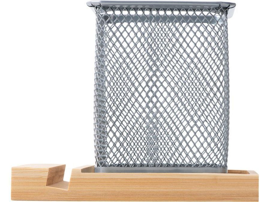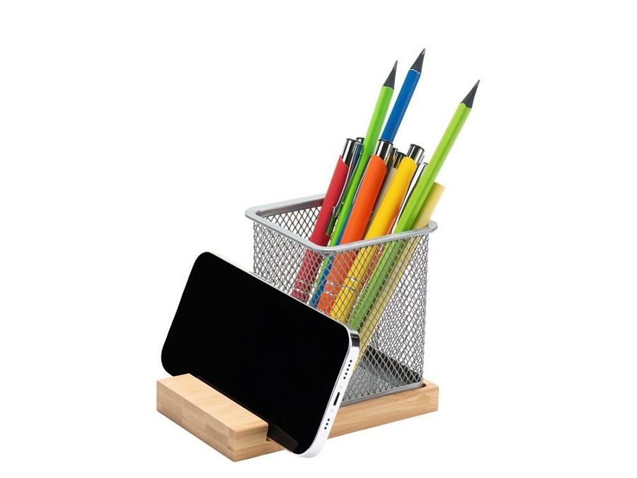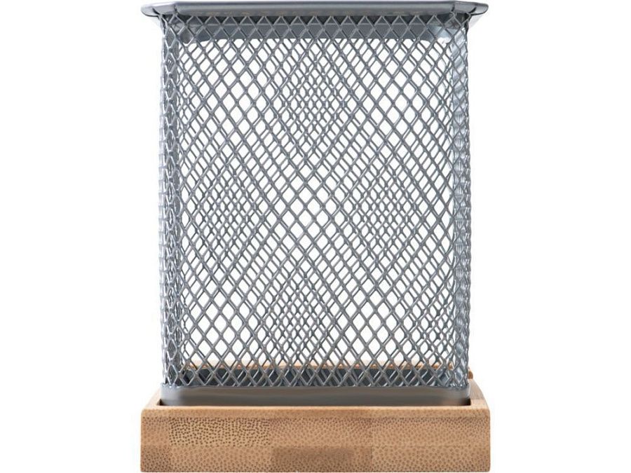 Функциональная подставка для ручек и карандашей, выполнена из прочного алюминия и установлена на бамбуковой основе. Элегантный дизайн этой подставки позволяет поддерживать порядок на вашем рабочем столе, обеспечивая легкий доступ к необходимым канцелярским принадлежностям.