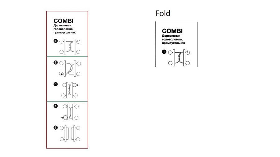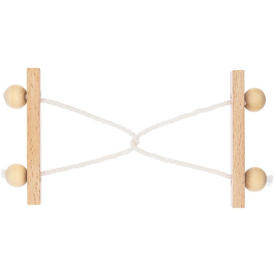 Миниатюрная головоломка Combi из натуральных материалов. Задача головоломки — разъединить ее элементы, не развязывая веревку.