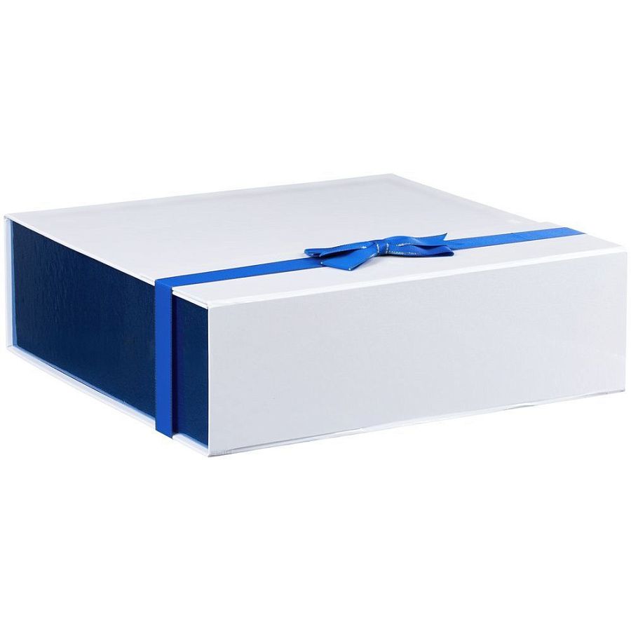 Коробка из переплетного картона, кашированного мелованной бумагой с глянцевой ламинацией. Крышка на двух магнитах дополнительно фиксируется лентой.Толщина картона 2 мм.