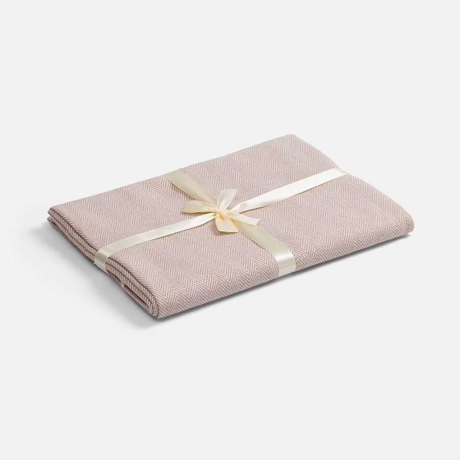 Классический рисунок «елочка» не слишком привлекает внимание, но в то же время добавляет изюминки. Смешанный состав пряжи продлевает срок службы и существенно облегчает уход за пледом.