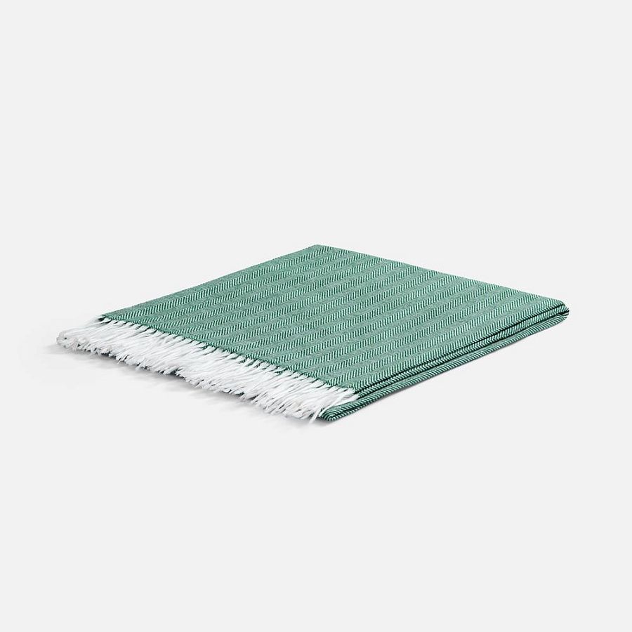 Классический рисунок «елочка» не слишком привлекает внимание, но в то же время добавляет изюминки. Смешанный состав пряжи продлевает срок службы и существенно облегчает уход за пледом.