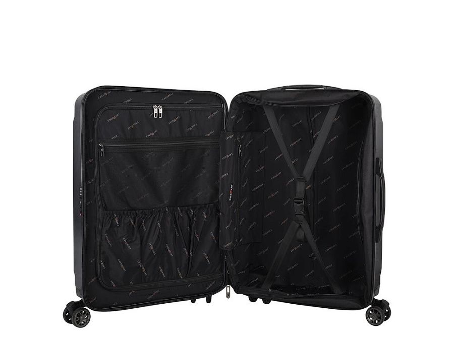 Чемодан на колесах Eberhart Craft S надежно оберегает багаж: для этого производитель установил кодовый TSA-замок. Сотрудники таможни смогут досмотреть чемодан для багажа без деформации и повреждения чемодана. Дополнительную защиту вещам обеспечивают прижимные ремни, расположенные внутри чемодана.