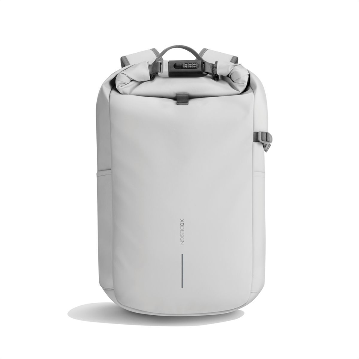 Антикражный рюкзак Urban Roll-top станет идеальным спутником в путешествиях и поездках. Помимо безопасности он гарантирует удобство и комфорт в любых ситуациях. Внутри рюкзака одно большое отделение с сетчатыми кармашками для организации вещей. Со стороны спинки есть мягкий отсек для ноутбука диагональю до 16’’. Снаружи располагаются три кармана: один из них — на спинке — для документов, телефона и других ценных вещей. Есть и два боковых кармана, один из которых нужен для бутылки с водой — ее можно дополнительно зафиксировать с помощью ремешка. Основная фишка Urban — сворачивающаяся верхняя часть. Сложите внутрь все необходимое, застегните молнию, а затем сверните верхнюю часть рулончиком и закрепите усиленными кодовым замком, открыть который сможет только хозяин. Для большего удобства в путешествиях на спинке есть багажный ремень для ручки чемодана. Прочный и стильный рюкзак изготовлен из переработанных пластиковых бутылок и полиуретана. Эти материалы отличаются водоотталкивающими свойствами — это значит, что ваши вещи останутся сухими во время дождя и снега. Общий объем рюкзака — 26 литров. Сертифицировано AWARE™. Наличие индикаторных частиц AWARE™ подтверждает, что мы действительно используем переработанные материалы. 2% с продажи каждой вещи, отмеченной сертификатом AWARE™, мы перечисляем в поддержку всемирной организации Water.org. Зарегистрированный дизайн®