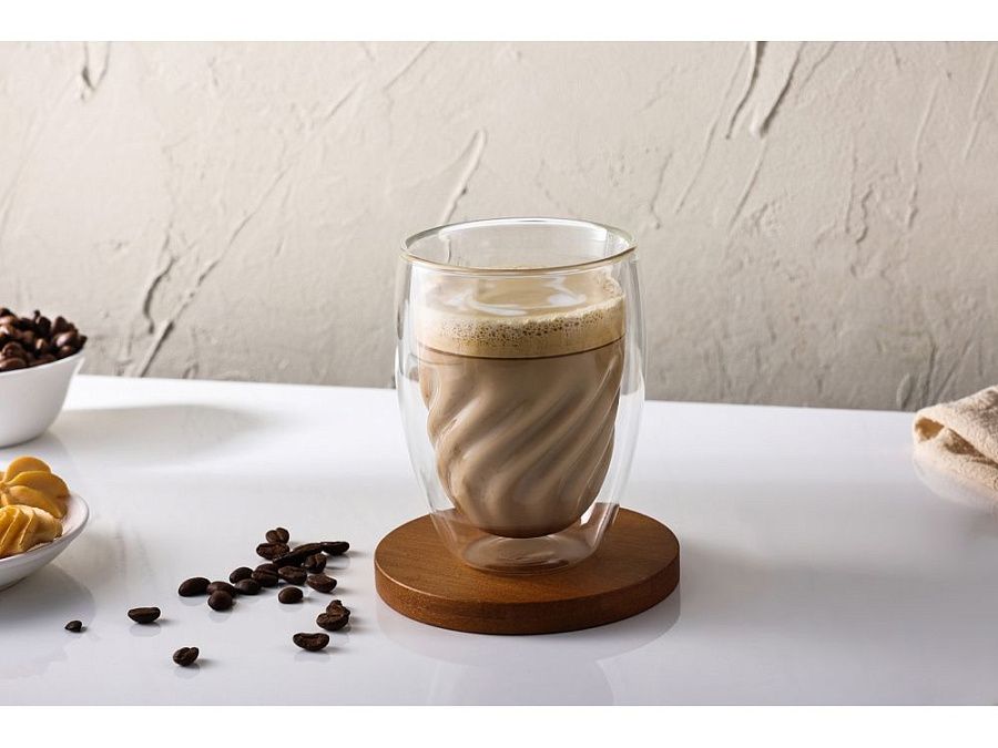 - Двойные стенки – поддерживают температуру напитка, защищают руки от ожогов и создают эффект «парения» жидкости внутри.