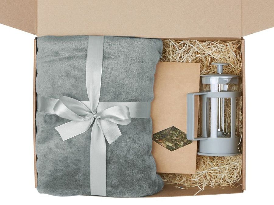 - Подарочные наборы с пледом серого цвета