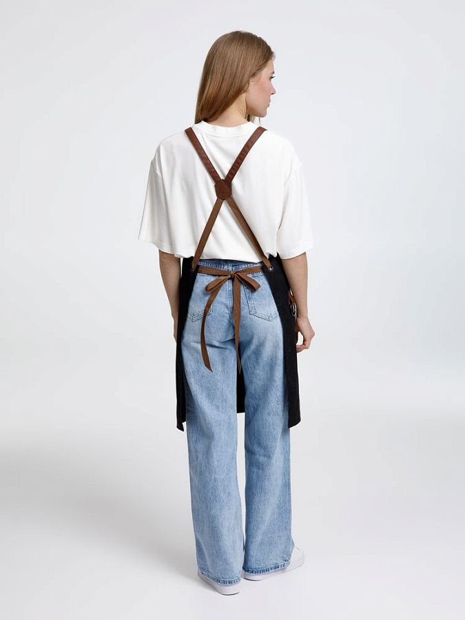 Функциональные карманы на груди и подоле эффектно украшают фартук, изготовленный из качественной дышащей плотной износостойкой ткани. Благодаря динамичным крестообразным лямкам он отлично сидит как на мужской, так и на женской фигуре. Кроме того, съемные лямки упрощают процесс стирки в стиральной машине.