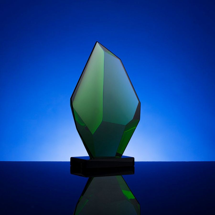 Эта стела-кристалл с легкостью поместится на ладони и подарит бурю положительных эмоций при награждении! Оригинальные стелы Cristallino напоминают эстетичные обломки настоящих кристаллов или минеральных камней, притягательных в своей уникальности и естественной простоте. Благодаря материалу — премиальному стеклу К9 — и особой технике окрашивания рождается оптический эффект: свет преломляется сквозь цветные грани, делая всю награду живой и яркой.