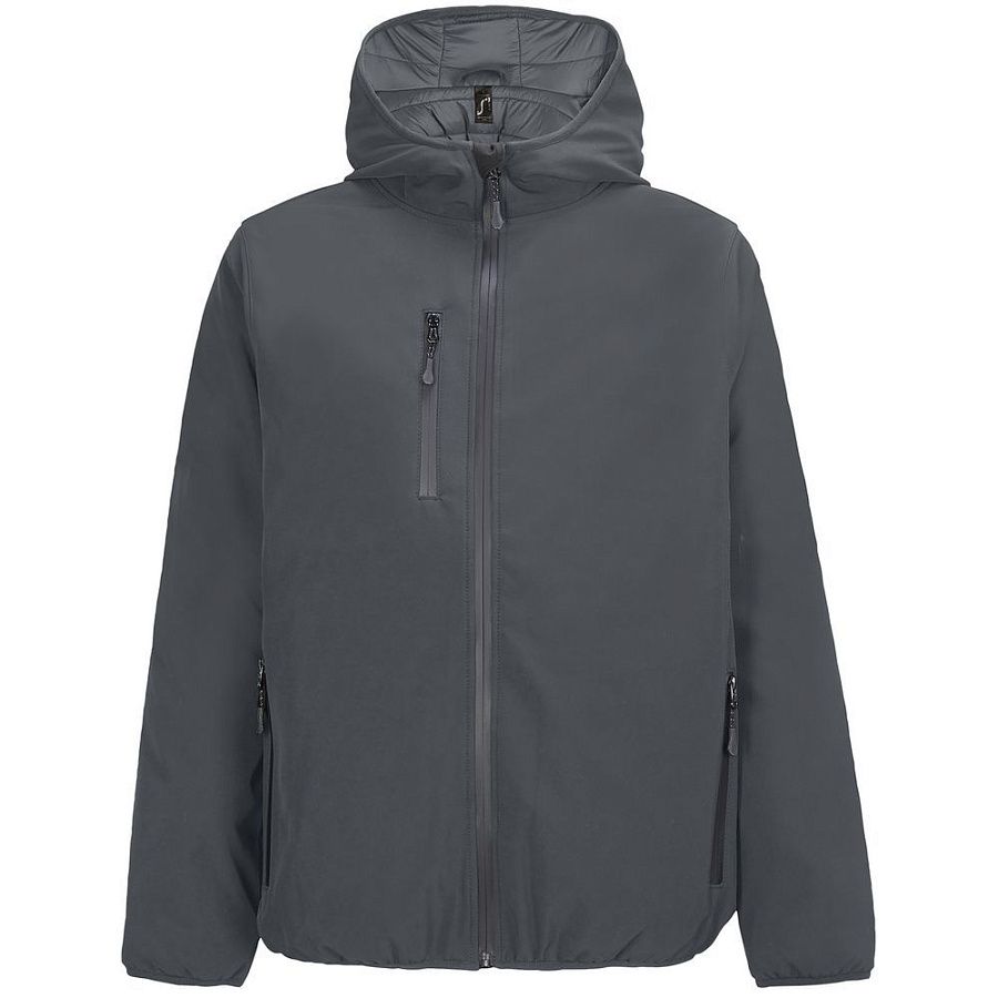 Мужская куртка софтшелл на молнии и с капюшоном.