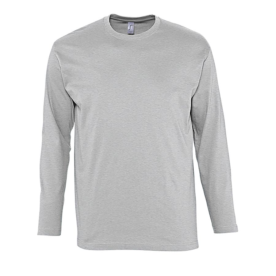 Мужская футболка с круглым классическим вырезом и длинными рукавами. Модель без боковых швов. Укрепляющая тесьма по вороту.