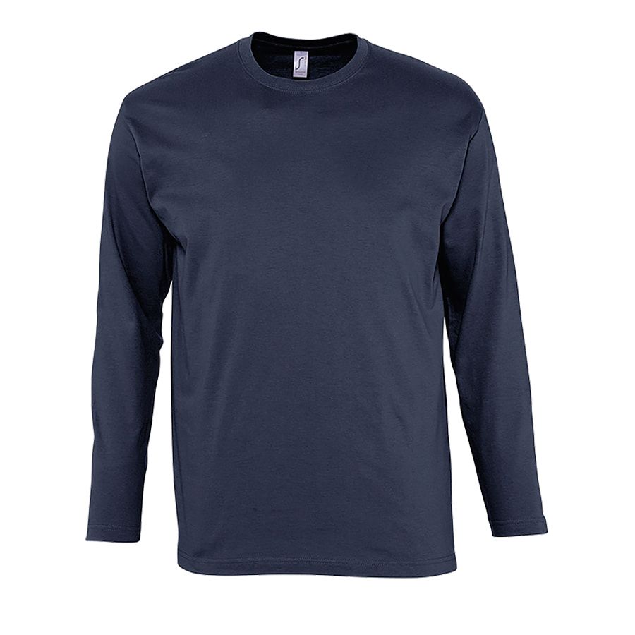 Мужская футболка с круглым классическим вырезом и длинными рукавами. Модель без боковых швов. Укрепляющая тесьма по вороту.