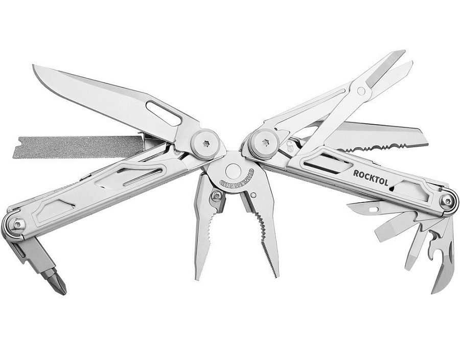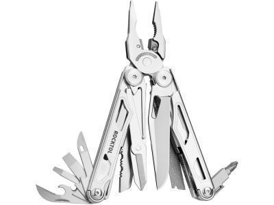 Этот многофункциональный инструмент включает в себя 29 инструментов, включая обычные плоскогубцы, плоскогубцы с игольчатым наконечником, сменные кусачки, устройства для снятия проволоки, прямые и зазубренные ножи, сменную пилу по дереву, напильник по дереву / металлу, большие пружинящие ножницы, шило, открывалки для бутылок и банок, отвертки с прорезями и отвертки для стаканов, сменную насадку с 8 наборами двухсторонних бит (SP8 + SP4, TT25 + TT20 , TT15+TT10, SL6 +SL5, SL4 +SL3, H5 +H4, H3 +H2.5, PH2+PH1). Все инструменты оснащены предохранителями для уверенного использования.