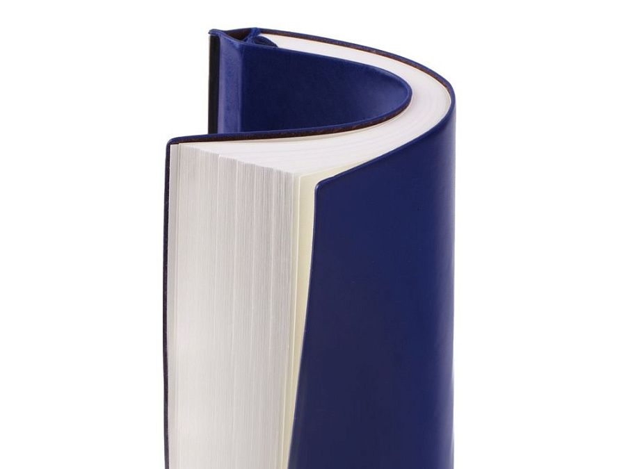Гибкая обложка выполнена из искусственной кожи, корешок дополнен металлической вставкой.