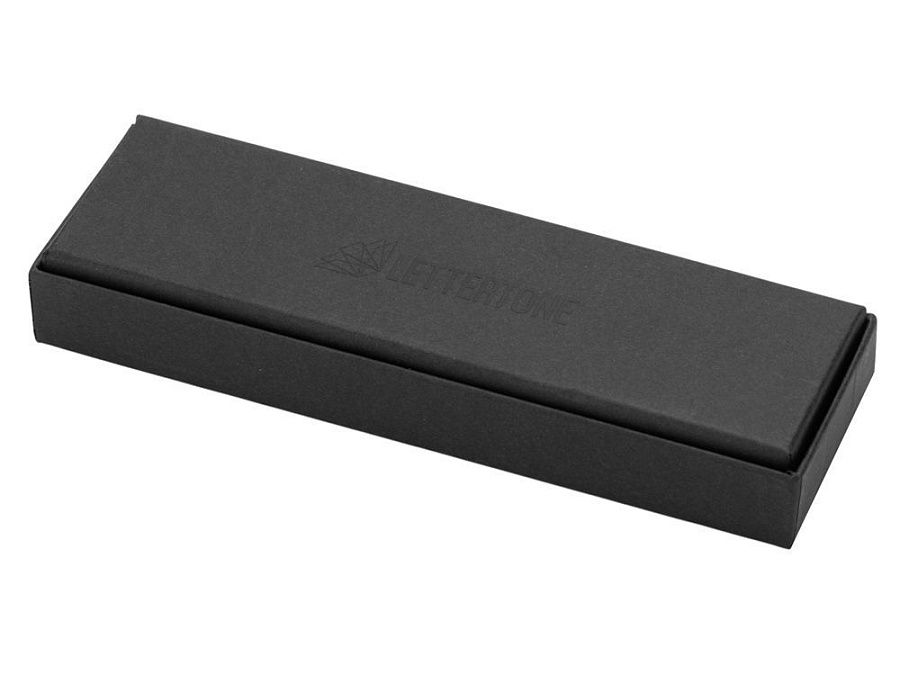 Ручка упакована в чёрный матовый футляр с логотипом бренда Lettertone на дне.
