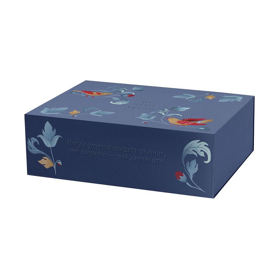 Изготовлена из жесткого переплетного картона. Матовая ламинация с покрытием «антицарапины» защищает от потертостей, сохраняя коробку безупречной даже при частом использовании, а индивидуальный пакет защищает от повреждений при транспортировке.