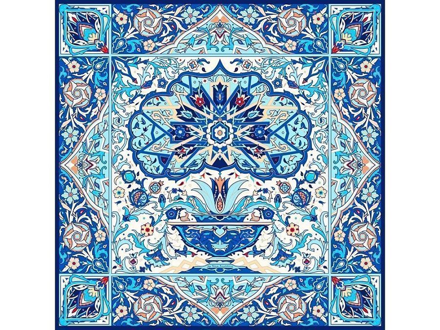 Платок «Кремль – Москва» в шелке воплощает шедевр ювелирного искусства Карла Фаберже из серии подарков для русской императорской семьи. В центре полотна расположен Успенский собор в обрамлении башен Московского Кремля. Утонченный рисунок, яркое цветовое решение и глубокий символизм дизайна платка созданы для эффектного акцента праздничного образа.