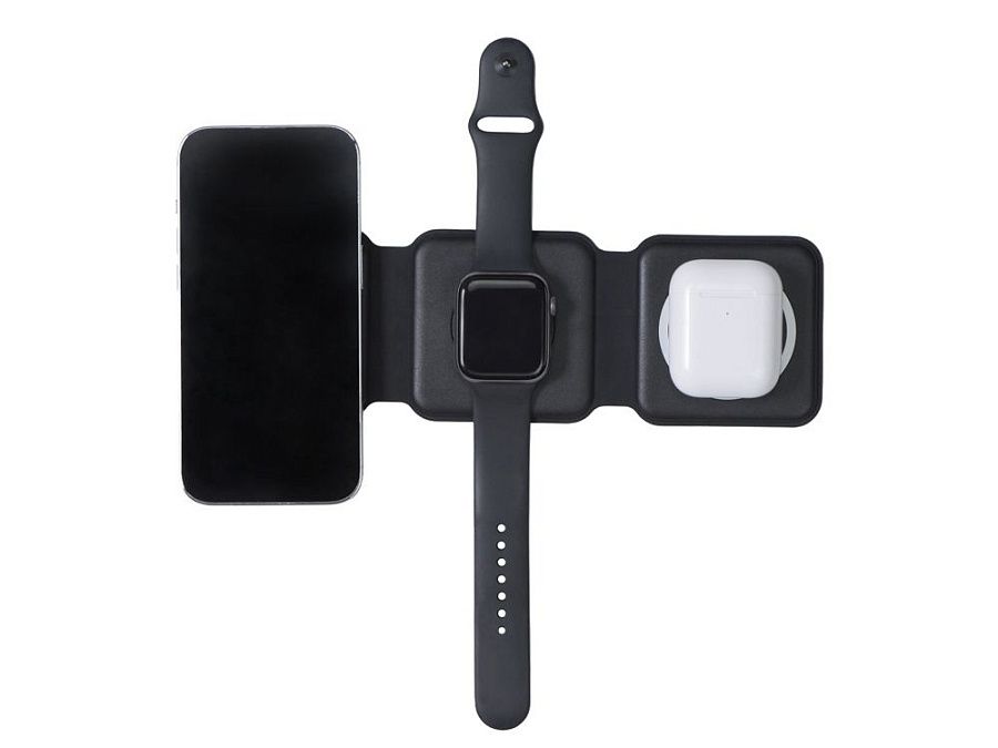 Беспроводная зарядная станция 3 в 1 — это современное решение для быстрой и удобной зарядки ваших устройств. Эта компактная и практичная модель позволяет заряжать сразу три устройства одновременно- любой смартфона и наушники с поддержкой беспроводной зарядки по протоколу Qi, и часы Apple.