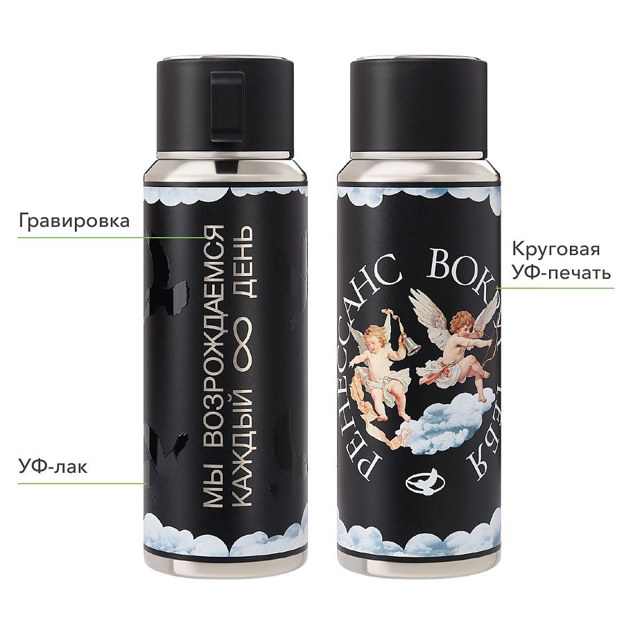 Все элементы изготовлены из безопасных материалов BPA free (не содержит Бисфенол А), а вакуумная конструкция надолго сохраняет температуру напитка.