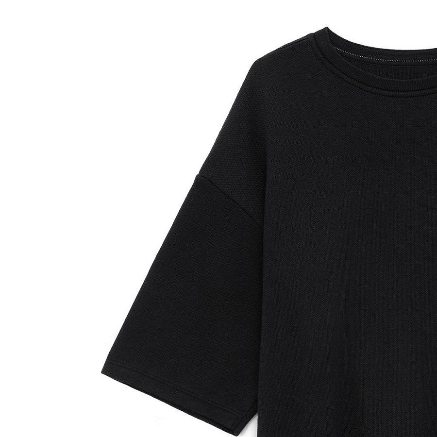 Siluetti Volumica — плотный вязаный джемпер-футболка прямого кроя с круглым вырезом и спущенной линией плеча. Фирменная бирка из силиконовой ленты станет интересной деталью, привлекающей внимание на фоне общей лаконичности модели.