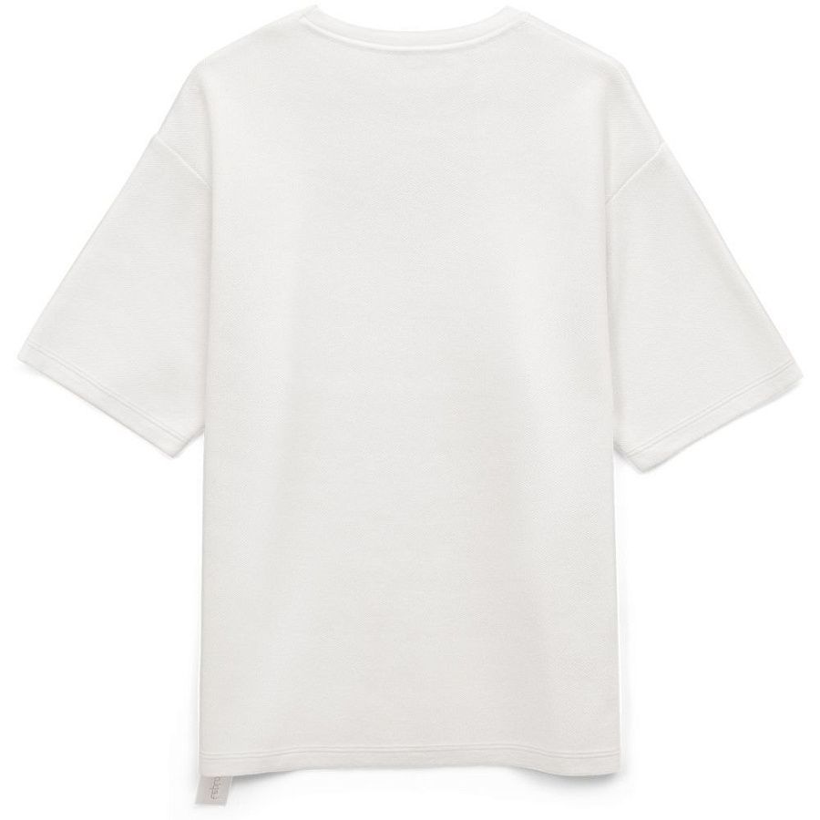 Siluetti Volumica — плотный вязаный джемпер-футболка прямого кроя с круглым вырезом и спущенной линией плеча. Фирменная бирка из силиконовой ленты станет интересной деталью, привлекающей внимание на фоне общей лаконичности модели.