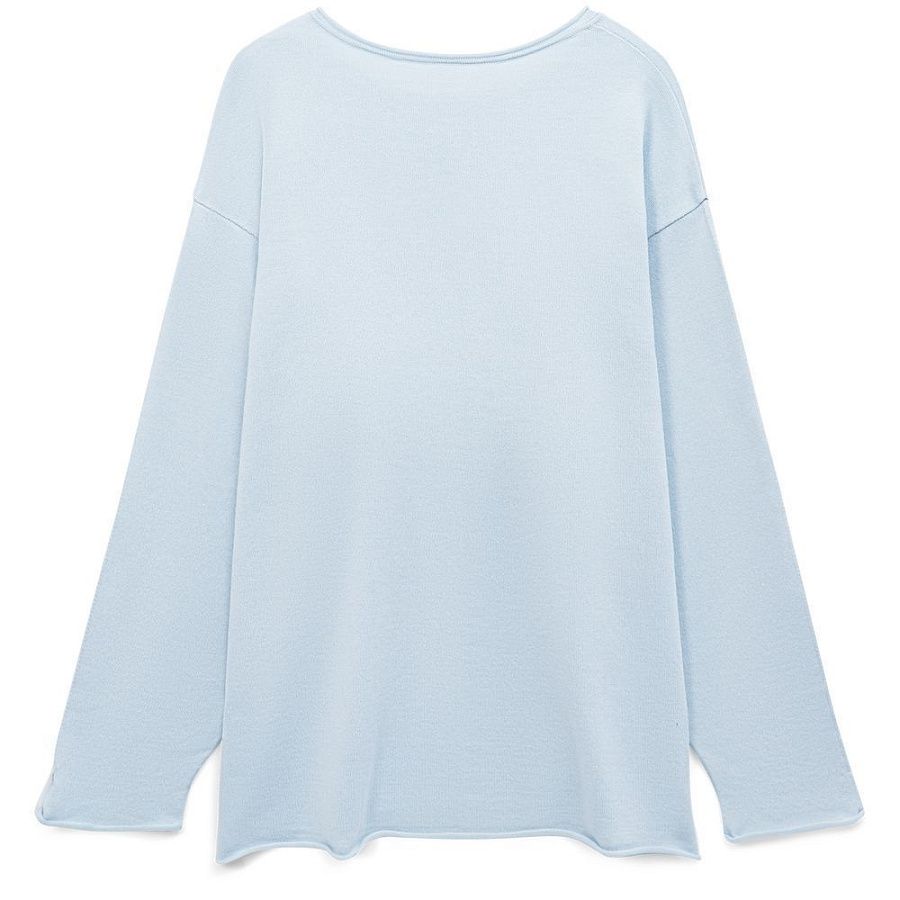 Лонгслив Fuori средней плотности с широким воротом, спущенной линией плеча и свободно подворачивающимися краями по низу, на рукавах и вороте, которые добавляют модели еще большей расслабленности. Прозрачная бирка с логотипом бренда на рукаве не нарушает минималистичности образа.
