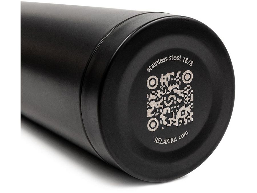 Классический термос Relaxika черного цвета с высокими показателями удержания температуры напитка для походов, путешествий, спорта и ежедневного использования. Прочные двойные стенки из высококачественной нержавеющей стали 18/8 с вакуумной изоляцией гарантируют, что ваш напиток останется холодным в течение 36 часов и горячим до 30 часов. Этот материал не только прочен, но и гигиеничен, не выделяет никаких вредных для здоровья веществ. Ваши напитки сохраняет естественный вкус и не приобретут посторонний запах.