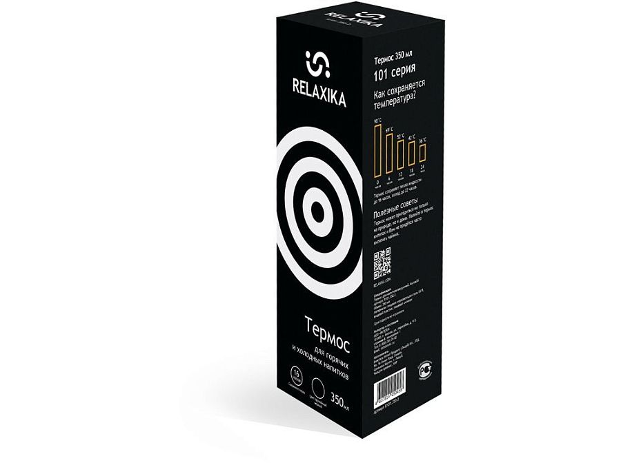 Классический термос Relaxika черного цвета с высокими показателями удержания температуры напитка для походов, путешествий, спорта и ежедневного использования. Прочные двойные стенки из высококачественной нержавеющей стали 18/8 с вакуумной изоляцией гарантируют, что ваш напиток останется холодным в течение 36 часов и горячим до 30 часов. Этот материал не только прочен, но и гигиеничен, не выделяет никаких вредных для здоровья веществ. Ваши напитки сохраняет естественный вкус и не приобретут посторонний запах.