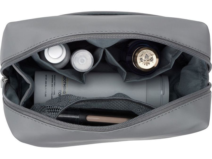 Стильный серый цвет делает косметичку универсальным полем для логотипов любого цвета.