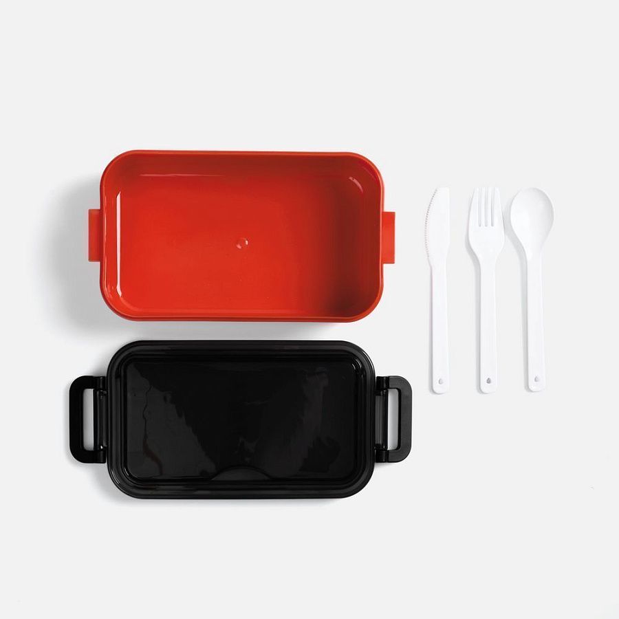 Удобная конструкция с крышкой на защелках обеспечивает надежную фиксацию. Специальное отделение под крышкой позволяет хранить столовые приборы, освобождая дополнительное пространство в сумке.