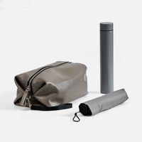 несессер - искусственная кожа; зонт - полиэстер, 300Т, спицы - стеклопластик; ручка - прорезиненный пластик; бутылка - нержавеющая сталь, 304 внутри, 201 снаружи; матовое покрытие