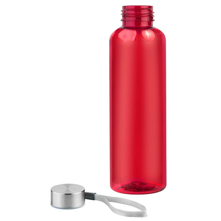 Пластиковая цветная бутылка с металлической крышкой.